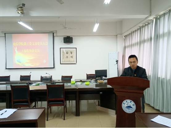 最后,学院党支部书记汪傧同志做总结讲话,他首先对两位同志表示祝贺和欢迎,并提出希望两位同志要以此为契机,结合正在开展的“不忘初心、牢记使命”主题教育,切实加强政治理论学习,不断提升业务能力水平,成为一名优秀的共产党员。