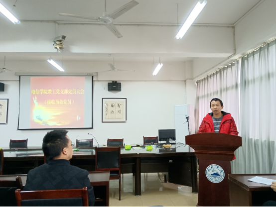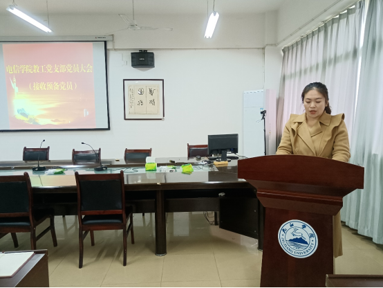 库进锋和刘春艳分别表态,表示要珍惜入党的机会,积极向党组织靠拢,要始终做到感党恩,听党话,跟党起,为电信学院的发展贡献自己的力量。