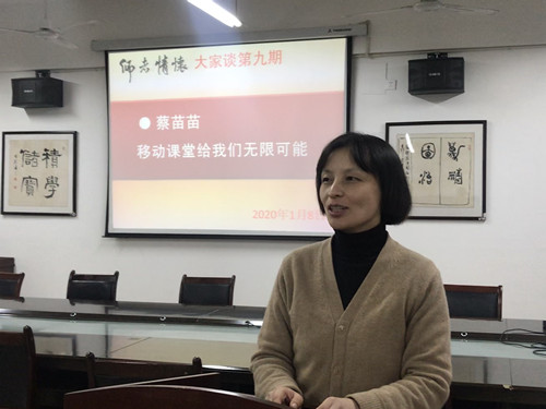蔡苗苗老师是一位热爱讲台、教学经验十分丰富的资深教师,年初还被评为“新华奖优秀教师”。她讲述的题目是:《移动课堂给我们无限可能》。他的讲述,意在与大家共同探讨课堂教学改革,主要针对随着手机的普及,老师如何应对?她说:“家长们和老师们,视手机为洪水猛兽,都认为手机害了我的孩子,于是砸了孩子的手机,断了家里的无限网络。但是,手机真的是祸害吗?我认为,手机是背锅侠。手机上瘾其实反映的是手机之外学生的另一个问题。一个学生如果长期钻在手机里不肯出来,以至于成为一种病态,那是因为手机游戏外的世界让他感到枯燥、不快或自卑。一个学生如果因为手机游戏耽误了前途,那他即使生活在没有手机的时代,也会有别的事情把他拉下水。我坚信使人堕落的不是手机游戏本身,而是心灵的空虚,或某些素质的缺失。那些在手机游戏中堕落的人,即使没有电脑游戏,也会有另外的什么东西使他不可自拔。”接着,她与大家分享了直面手机进入课堂、主动发挥手机的多重功能助力课堂教学、管理的想法和经验。