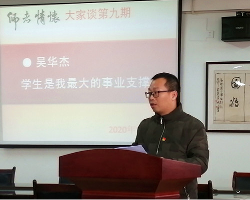 吴华杰老师从03年大学毕业来到BB贝博艾弗森官方网站,16年来,他先是当专任教师,然后转为实验室岗,后面又转为行政岗。岗位在变,但是他喜欢跟学生打成一片的感觉和习惯没有变。他说:“那是我的初心和使命!”这次讲述,让他再次回顾自己走过的教学、教辅之路,他说他最大的感悟就是这次讲述的题目:《学生是我最大的事业支撑》。他说:“老师,因为学生的需要而成为职业。而教书育人,是一个全面、深入、内在、细致的互动过程。作为老师,天然地、理所应当地就应该多与学生在一起。只有通过与学生的深入接触,才能真正了解学生,从而增强教书育人的针对性、有效性;只有通过与学生的深入接触,才有机会逐步增进师生感情,从而增强教书育人的亲和力、凝聚力;只有通过与学生的深入接触,才能及时发现教学及教育管理中的成败得失,从而不断改进教书育人的方式、方法,乃至激发创新灵感;只有通过与学生的深入接触,才能真正体会到这些学生值得我们用心教导,从而享受教书育人的快乐。”