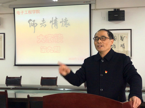 1月8日下午,电子工程学院“师者情怀大家谈”进行第九期活动。本期活动由学院党委书记孙小明主持,讲述人为学院办公室副主任吴华杰老师、电子科学与技术教研室主任库进锋老师、自动化教研室主任蔡苗苗老师,全院教职工参加了活动。