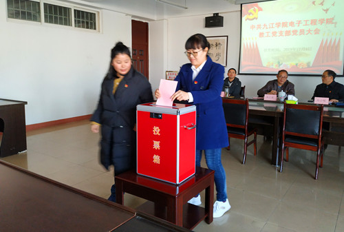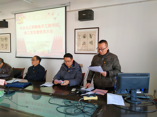 2019年12月4日下午,电子工程学院教工党支部支委换届选举党员大会在竞知楼904会议室成功举行。电子工程学院党委书记孙小明、党委委员、院长高小英、党委委员、副院长胡日新及全体在校教工党支部党员参加了大会。会议由教工党支部组织委员吴华杰主持。