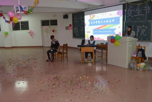 为丰富电子学院女生的校园文化生活,增强学生的凝聚力,增进同学之间的友谊,3月7日晚,以热心帮助、关爱女生为主题,电子学院女工部带领相关部门人员在竞知楼阶七教室举办“三七女生节”文艺晚会,电子学院的全体学生积极地参与到此次活动中来,观看表演并热情互动。
