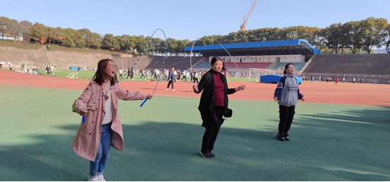 本次活动为单人跳绳,女老师们积极参与,各显身手,每位参加活动教师都充满了活力与热情,脸上挂满了笑容,挥动手中的跳绳,身轻如燕,充满了活力与热情,在一片沸腾的气氛中感受着运动带给她们的快乐。