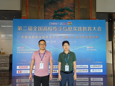 教育部高等学校电子信息类专业教学指导委员会与高等学校国家级实验教学示范中心联席会电子学科组主办,昆明理工大学承办,清华大学出版社协办的“第二届全国高校电子信息实践教育大会”于2024年7月15―17日在昆明市成功召开。本届大会主题为“全面培育教学新质生产力,构建人才自主培养新体系”,邀请电子信息学科领域专业负责人、实践教学负责人、创新创业负责人,聚焦实践教学建设,分享优秀经验与成果。来自全国200余所高校、20余家知名企业,共200余位电子信息相关专业院校领导、专业负责人、骨干教师与企业代表参加本届大会。BB贝博艾弗森官方网站谢新文和刘理老师参加了此次会议并认真学习了会议精神和内容。