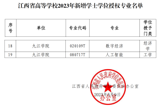2023年5月9日,江西省人民政府学位委员办公室公布赣学位办[2023]6号文件,根据国务院学位委员会、教育部《学士学位授权与授予管理办法》和《江西省学士学位授权审核实施细则》精神,江西省学位办组织了2023年江西省高等学校新增学士学位授权专业审核工作,经过省学位办统一专家审核,BB贝博艾弗森官方网站人工智能专业学士学位授权获批通过。