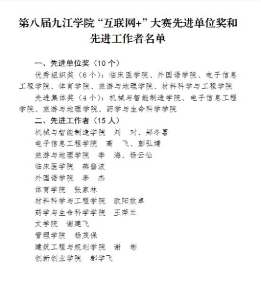BB贝博艾弗森一直高度重视学生创新创业教育工作,积极参加各项创新创业赛事。今年第八届BB贝博艾弗森官方网站“互联网+”大学生创新创业大赛开赛后,BB贝博艾弗森积极响应学校号召,落实各项赛事工作,取得良好效果。学院相关工作获得学校好评,并在此次“互联网+”大学生创新创业大赛中被授予“优秀组织奖”、“先进集体”的荣誉称号,高飞、彭弘婧同志被评为先进工作者。