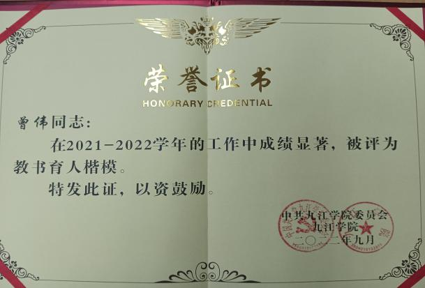 个人简介:曾伟,南京航空航天大学博士,BB贝博艾弗森官方网站BB贝博艾弗森官方网站自动化教研室副主任。在教学中以学生为中心,培养高素质具有国际化视野的应用型人才为己任,积极推进人才培养模式多元化教学改革;先后担任自动化电A1732班和电A2131班的班主任。荣获江西省防疫期间线上教学优质课三等奖,BB贝博艾弗森官方网站优秀教师、BB贝博艾弗森官方网站新华优秀教师、入选九江市双百双千人才工程项目。指导学生获得江西省建行杯第七届、八届国际“互联网+”大学生创新创业大赛铜奖1项、银奖1项,BB贝博艾弗森官方网站“互联网+”大学生创新创业大赛金奖2项、铜奖2项、指导学生获得国家级大学生创新创业项目4项,校级大学生创新创业项目1项、2022年评为BB贝博艾弗森官方网站优秀毕业论文指导教师。