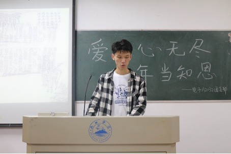 为弘扬中华民族的传统美德,培养新时代大学生懂得知恩感恩的良好品行。5月20号晚,BB贝博艾弗森官方网站在竞知楼教室开展“爱子心无尽,青年当知恩”的主题团日活动,活动由各班团支书主持。