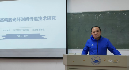 高精度光纤时间传递技术在导航、定位与授时领域具有重要的研究意义,是国家战略和经济发展的重要技术支撑。会上,陈丁老师首先介绍了光纤时间传递技术的研究背景、国内外研究进展。随后对传递系统的传递距离、传递精度、系统拓展性及可靠性进行了讨论,并详分析了现有典型时间传递方法和原理。最后,针对今后的研究前景和工作计划进行了展望。