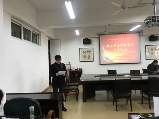 会议由电子学院教工党支部书记杨长春同志主持,会议首先由武良丹委员介绍电子学院教工党支部党员组成情况,然后由发展对象谢新文同志宣读自己的入党志愿书,汇报自己对党的认识、入党动机、本人经历、工作情况等,表达了自己渴望加入党组织的强烈愿望。接着由入党介绍人胡日新和武良丹同志介绍谢新文同志的情况。进入大会讨论阶段,党员同志们一致认为谢新文同志具有较高的政治思想理论水平和良好的群众基础,以及一贯踏实肯干的工作作风。大会采取无记名投票方式进行表决,全体党员一致同意接收谢新文同志为中共预备党员。谢新文同志承诺一定不辜负领导和同事们的期望,以后会更加严格要求自己,牢记党的宗旨,不断学习先进的教育教学理念,教好每一位学生,真正发挥党员的先锋模范作用。