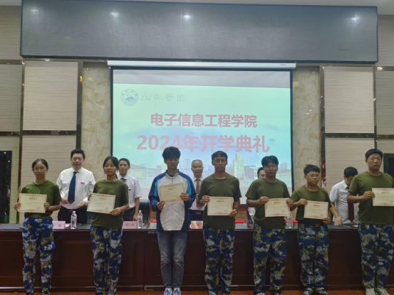 校友代表黎星华博士,BB贝博艾弗森2016届优秀毕业生,虽然家庭经济困难,但通过坚持不懈的努力,今年6月份从北京邮电大学博士毕业,并顺利入职中国电子科技南湖研究院。他向新生分享了自己学习成长的经历,并寄语学弟学妹三点期望,一是树立长远目标和阶段性目标,二是多参与比赛和活动,扩宽圈子和提高技能,三是心怀梦想,勇往直前,成长为那个最优秀的人。