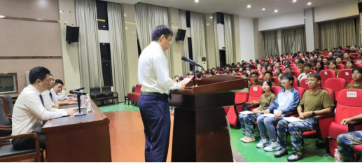 邓长寿院长发表了题为《志存高远,笃学躬行,厚德修身》的致辞,代表学院全体师生,向远道而来、怀揣梦想的350名新同学致以最热烈的欢迎和最诚挚的祝福!他向新同学们介绍了学院的师资力量、办院理念、育人模式和人才培养取得的成绩。他深情寄语新同学,一要志存高远、胸怀国家,二要笃学躬行,筑牢根基,三要厚德修身,德才兼备,希望同学们在“尊重、包容、感恩、成长”的文化氛围中,勤奋学习、涵养品行、锤炼能力,全面提升自己,为书写出属于自己的辉煌篇章夯实基础。