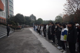 12月7日晨跑前,BB贝博艾弗森在电子信息实验楼前对2021级军训先进个人进行表彰,活动由2021级辅导员盛健老师主持。