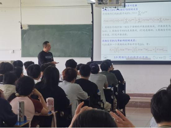 课堂上,陈栋老师以经典爱国歌曲"我和我的祖国"的时域抽样为例,引导学生分析歌曲波形图的时域特征,通过抽样定理的讲解,让学生直观理解信号处理的基本原理。陈老师将专业理论与思政教育有机融合,展现了课程思政的创新实践。