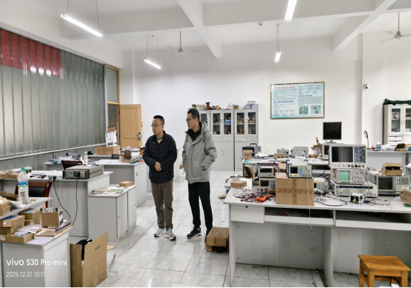 随后在电子信息实验楼,学院领导对实验室的用电规范、设备运行、危化品管理、消防设施等进行了重点检查。汪书记指出,实验室安全是学院安全工作的重中之重,必须严格执行安全准入制度与操作规程,强化日常巡检,及时消除隐患。检查期间,院领导特地看望了正在开展科研工作的师生,在硕导曾伟博士的实验室,与曾伟博士及其所带研究生进行了交流,详细了解了他们的科研进展、寒假留校安排及生活保障情况。