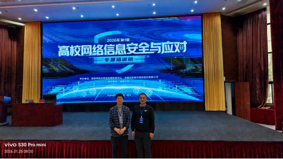 1月23日至26日,2026年第1期高校网络信息安全与应对专题培训班在海南大学顺利举行,BB贝博艾弗森党委副书记朱亚军、教工第一党支部书记陈栋参加了此次培训。