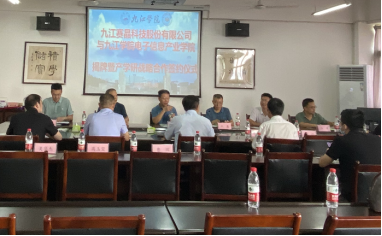 九江赛晶科技股份有限公司与BB贝博艾弗森官方网站电子信息产业学院揭牌暨产学研战略合作签约仪式于8月16日在BB贝博艾弗森会议室举行。我校副校长严平,九江市城西港区管理局局长张南、副局长徐志坚,市工信局科技科科长鲍澄,九江赛晶科技股份有限公司副总经理陈锋、总经理助理罗明阳、工会主席吴海芬、综合部部长助理翁玲瑜,我校科研处处长汪鑫、创新创业学院负责人宋士华,BB贝博艾弗森官方网站院长邓长寿、党委书记汪傧、副院长冷清明及教师代表等出席签约揭牌仪式。仪式由宋士华主持。电信教研室专业负责人曹晖副教授、高玉宝博士协助BB贝博艾弗森完成了这次活动。