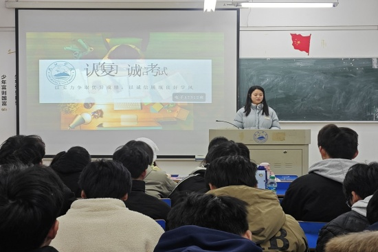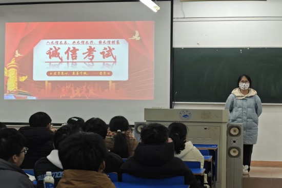 期末考试临近,为增强同学们诚信应考意识,营造公平、公正、诚信的考试氛围。BB贝博艾弗森于12月21日晚在竞知楼各班教室开展诚信考试主题班会。
