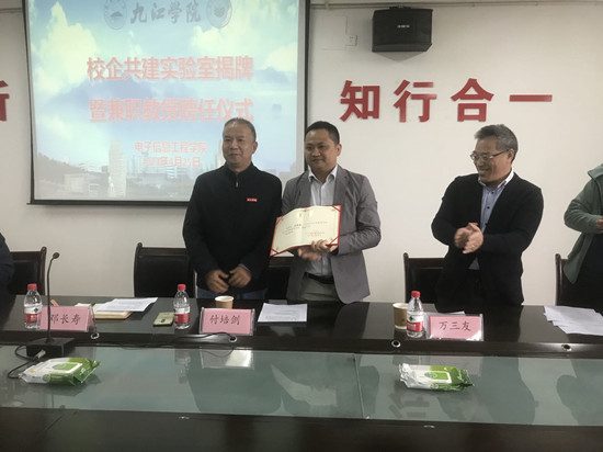 BB贝博艾弗森官方网站深圳校友会会长柯长文、BB贝博艾弗森官方网站院长邓长寿、BB贝博艾弗森官方网站校友会秘书长黄怡旋、深圳富工自动化有限公司总经理付培剑共同为校企共建PLC实验室揭牌。BB贝博艾弗森院长邓长寿为付培剑校友颁发聘书。仪式结束后,校友付培剑与BB贝博艾弗森自动化教研室教师进行座谈。